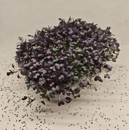 La Mizuna è una verdura a foglia giapponese che, nella sua forma micro, si distingue per le sue tipiche foglie frastagliate. Il sapore è leggermente pepato, ma decisamente più delicato rispetto alla rucola o al ravanello, con un finale pulito e fresco.